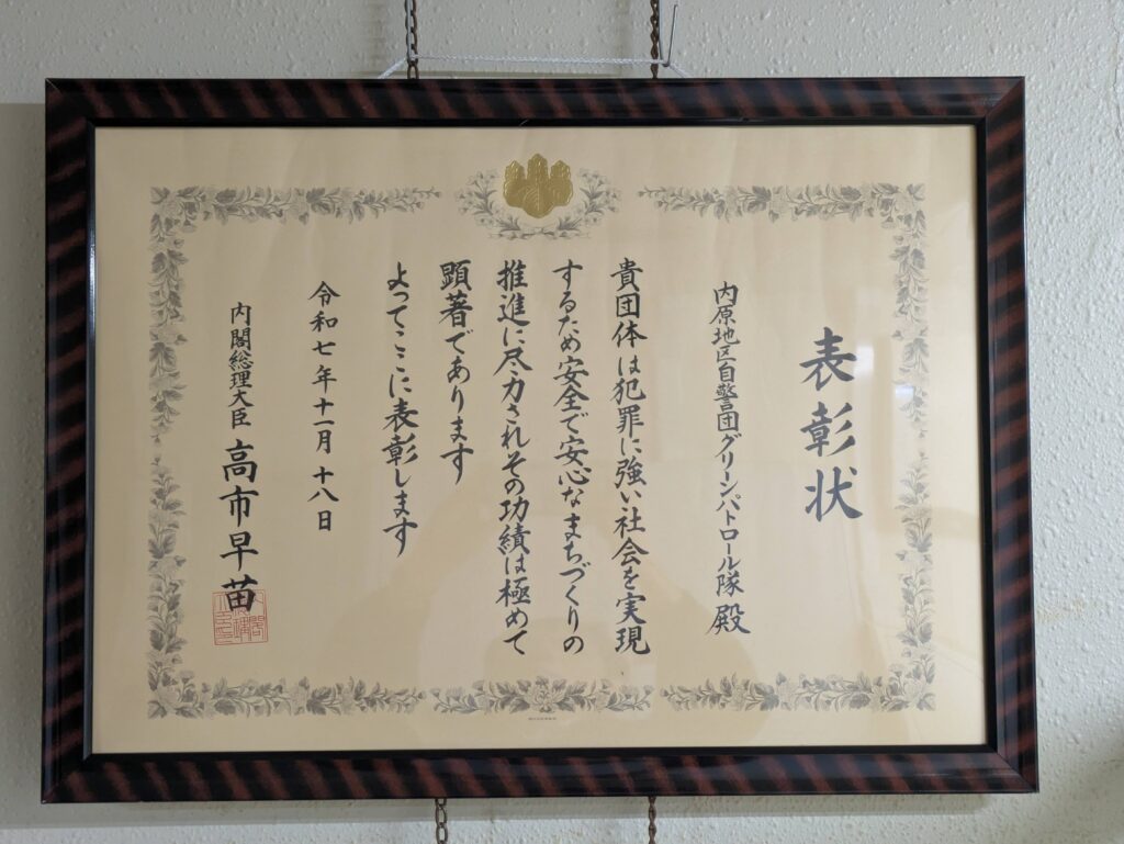 令和7年11月18日、内閣総理大臣から「内閣総理大臣賞」を受賞いたしました。